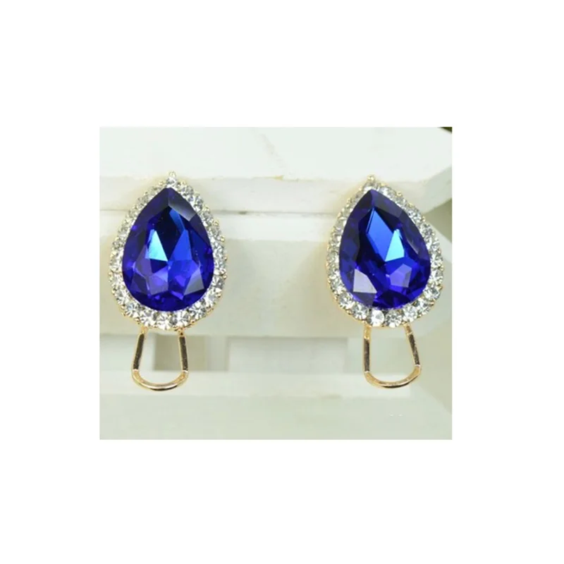 Top Quality Austria Crystal Rhinestone Water Drop Shape Clip on Earrings Non Piercing Charm Bridal Ear Buckle Earrings Bijoux