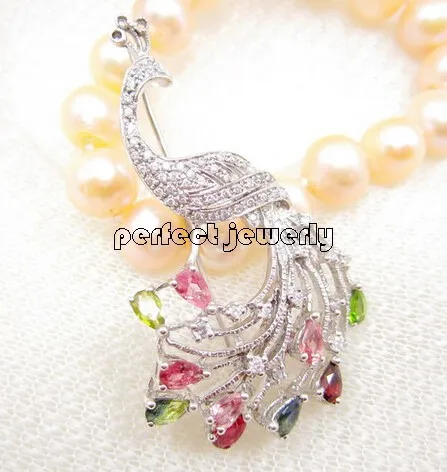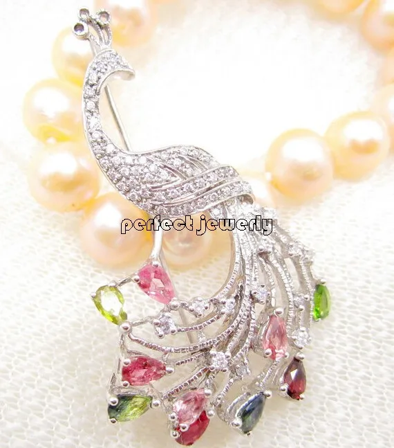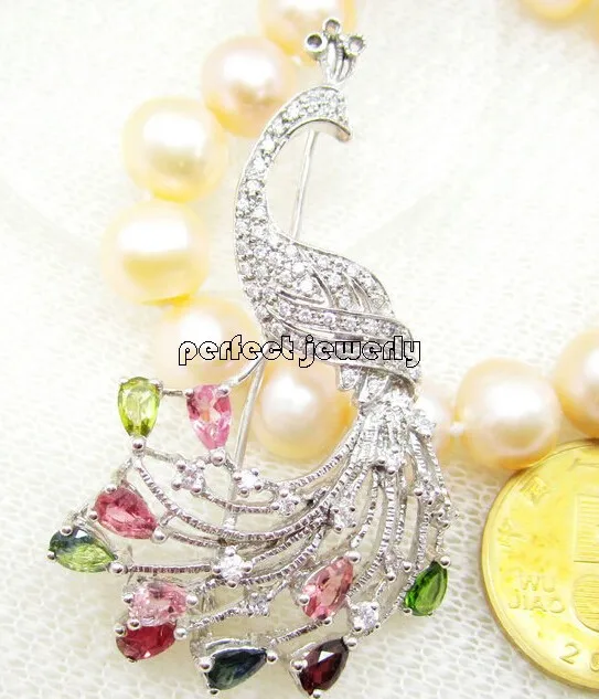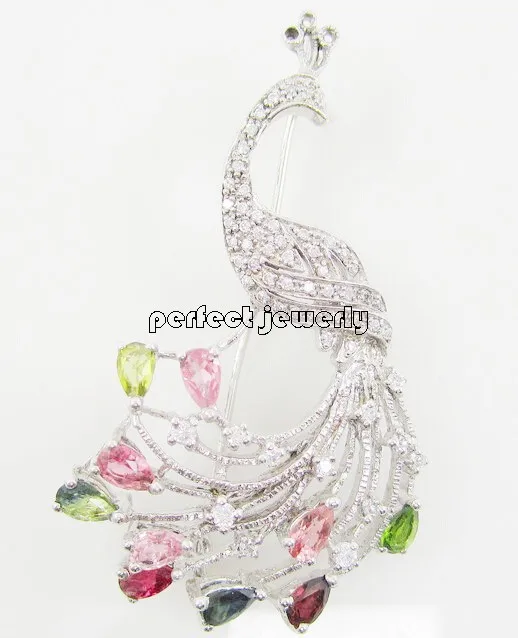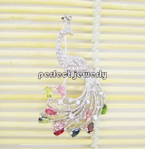 Tourmaline brooch 0.45ct*10pcs gems Natural real tourmaline 925 sterling silver brooch,1pc/jewelry box Peafowl style #15050401