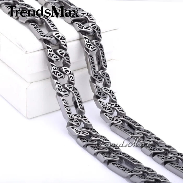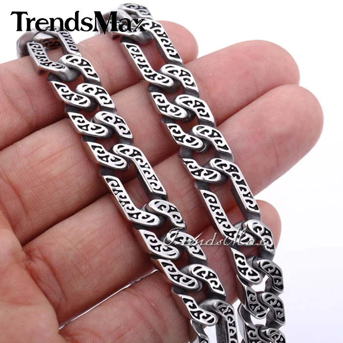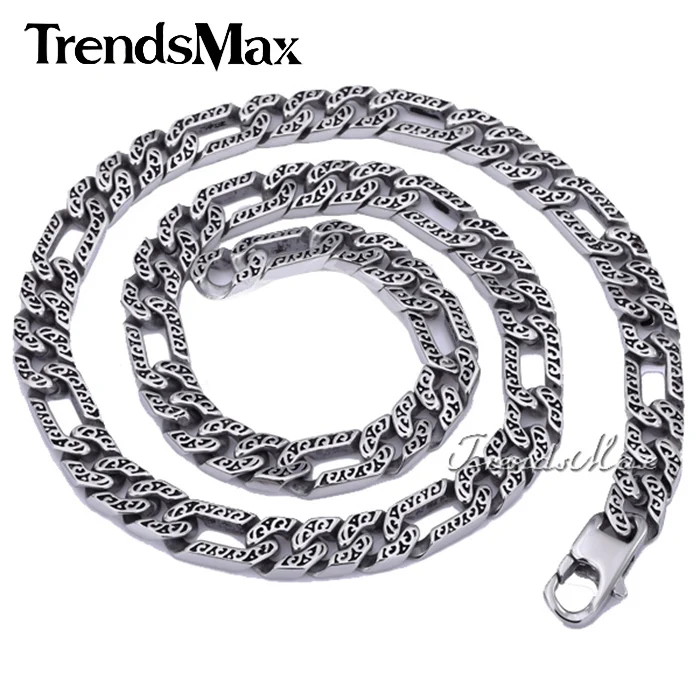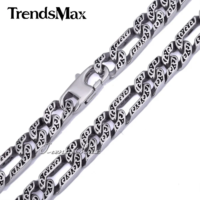 Trendsmax Custom Any Length 10mm Heavy Figaro Animal Skin Mens Chain Boys Necklace Silver Tone 316L Stainless Steel HN34