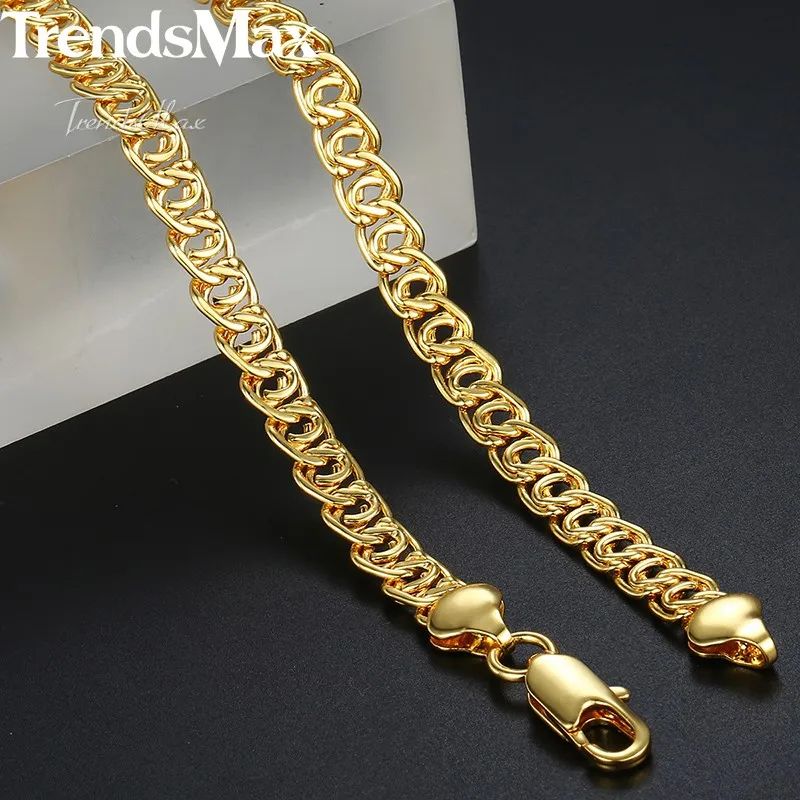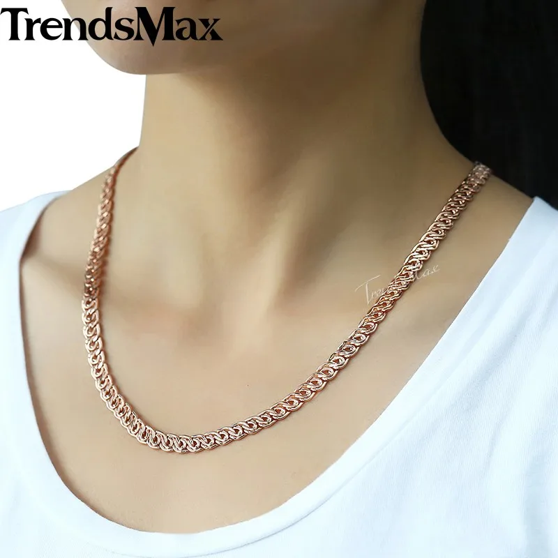 Trendsmax Necklace For Women Men 585 Rose Gold Snail Curb Link Chains Womens Necklace Gift Jewelry 7mm 45cm-60cm GN326