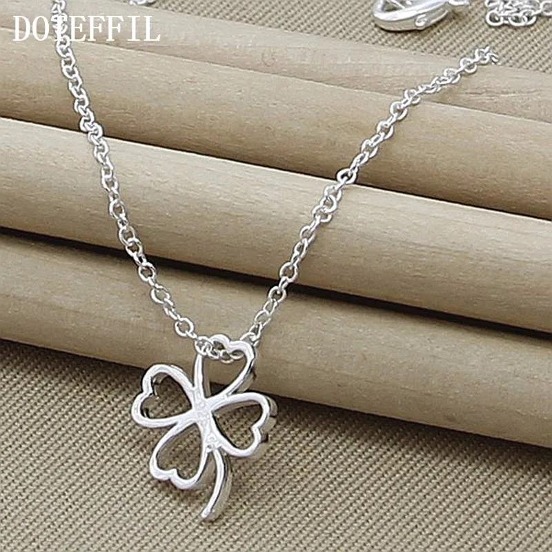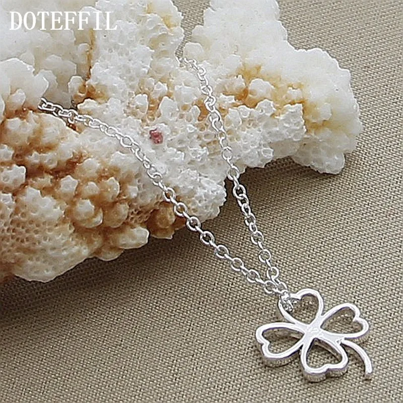 Trendy Flower 925 Silver Color Necklace Women Jewelry Four Leaves Clover Necklaces Pendant For Mother Gift