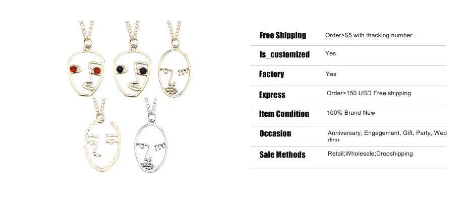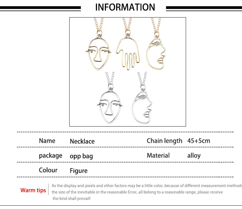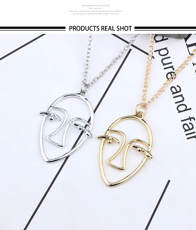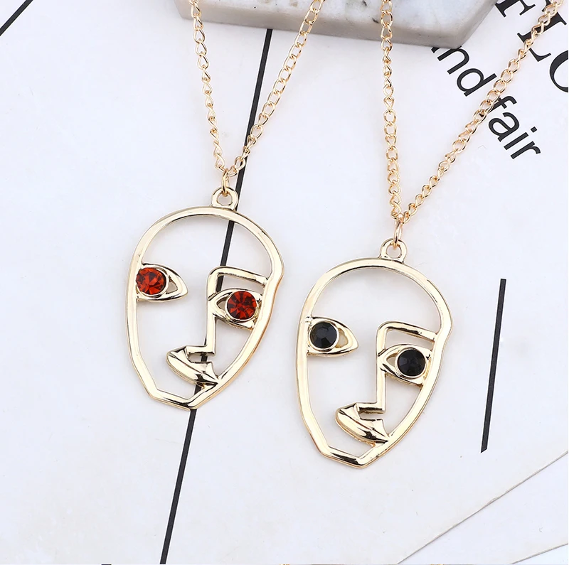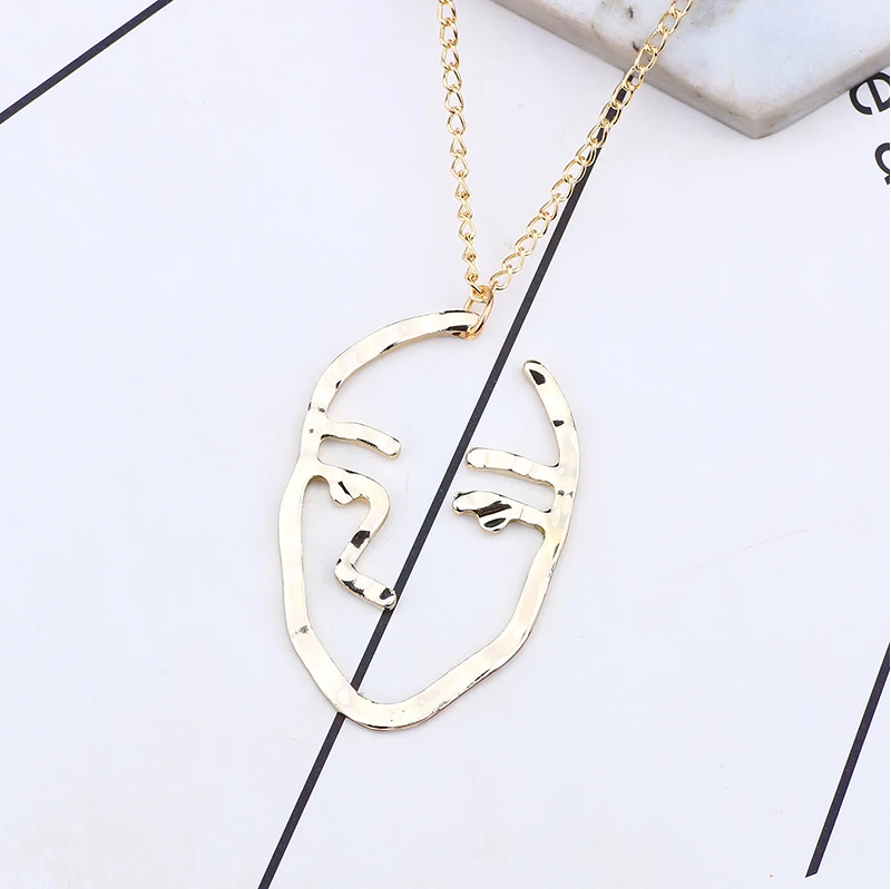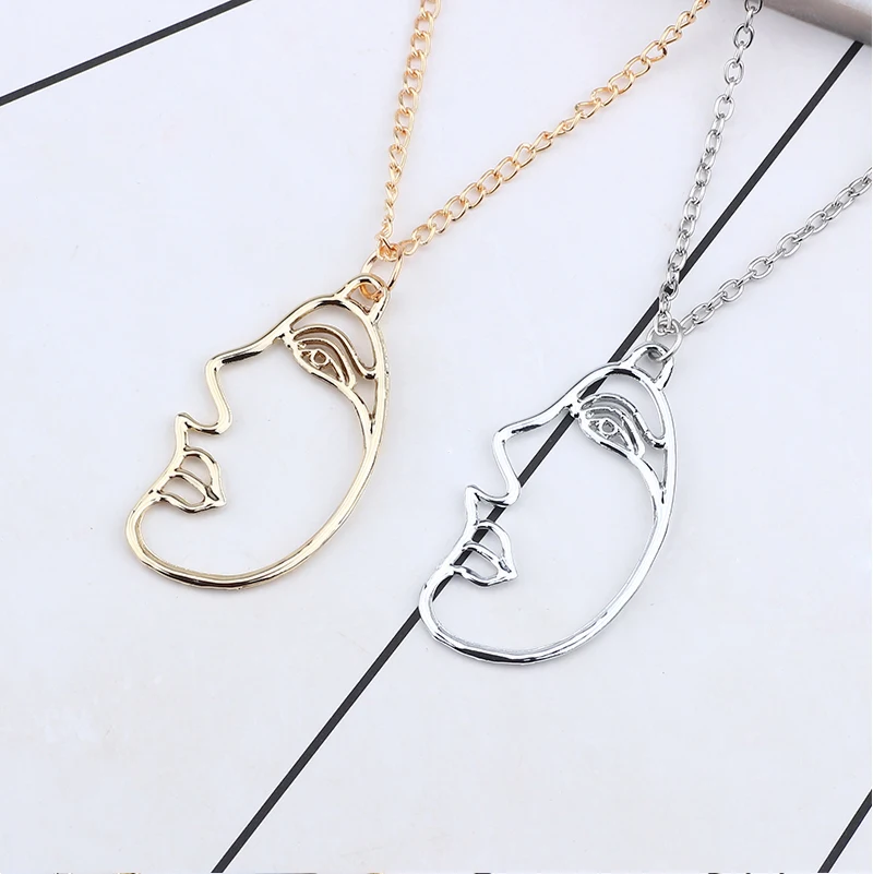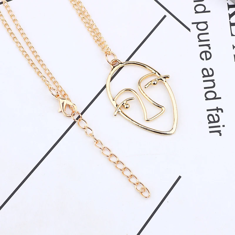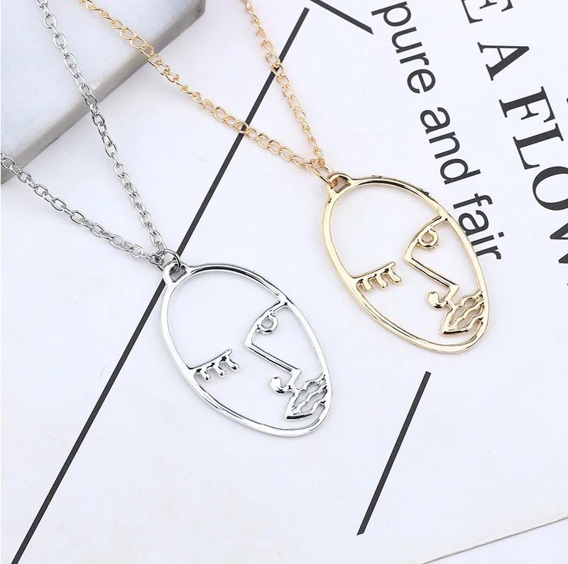 Trendy Hollow Abstract Face Pendant Women Art Stylish Necklace Hip Hop Figure Necklaces&Pendants DIY New Year Gift Dropshipping