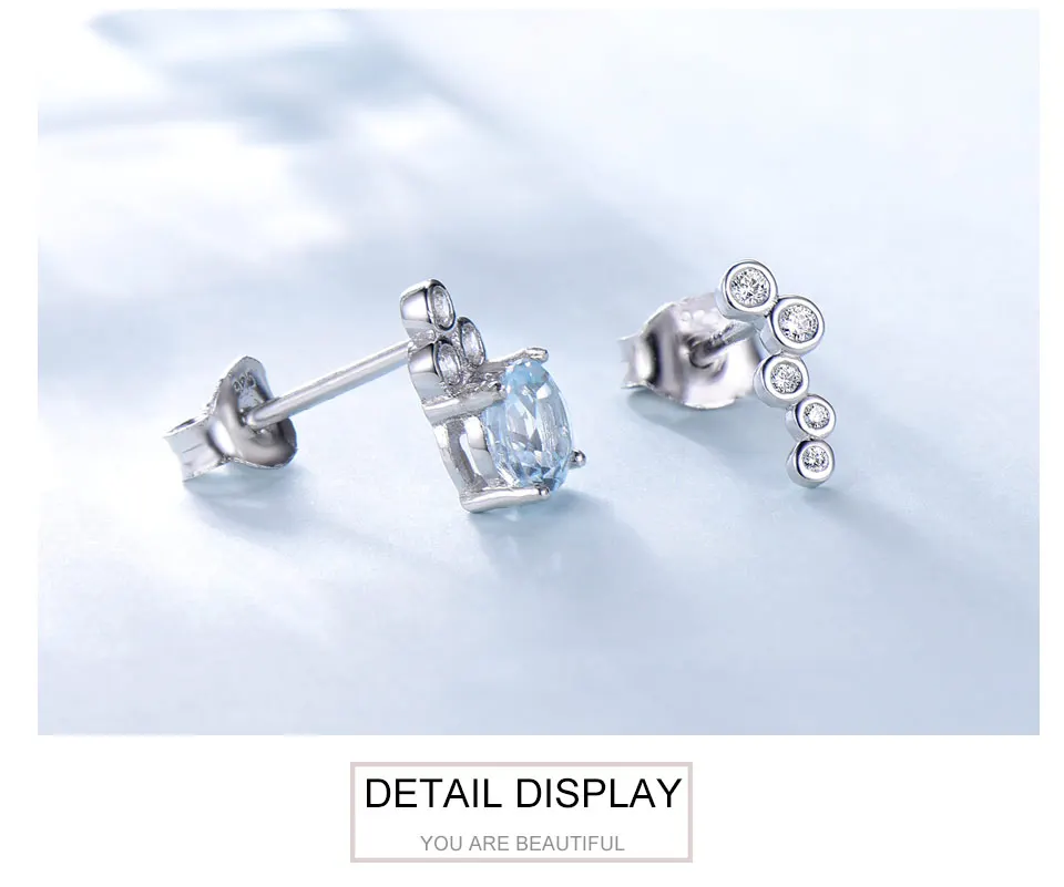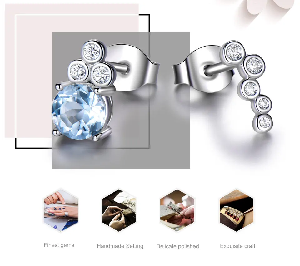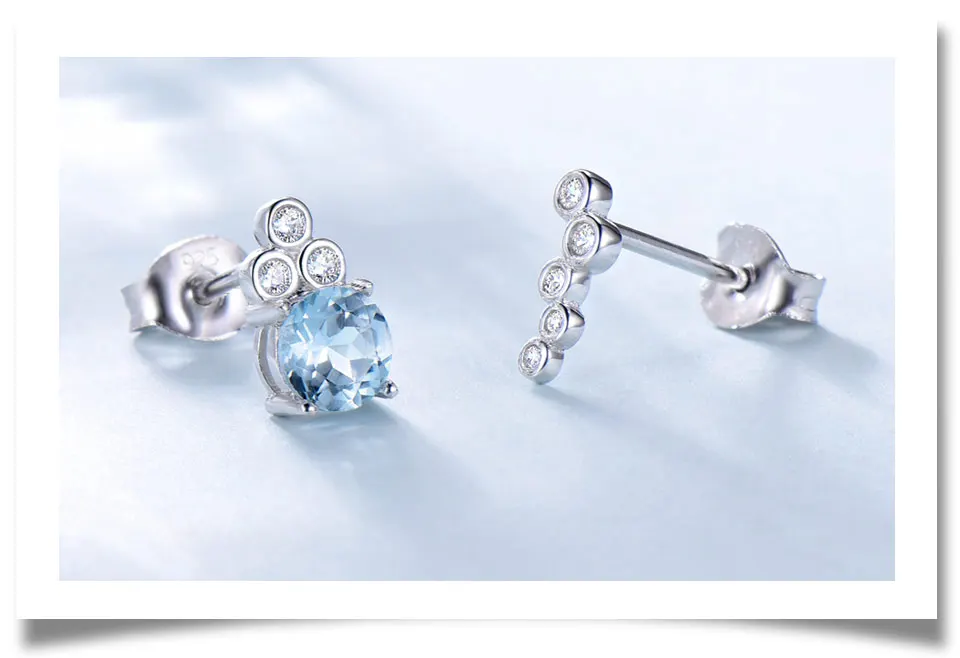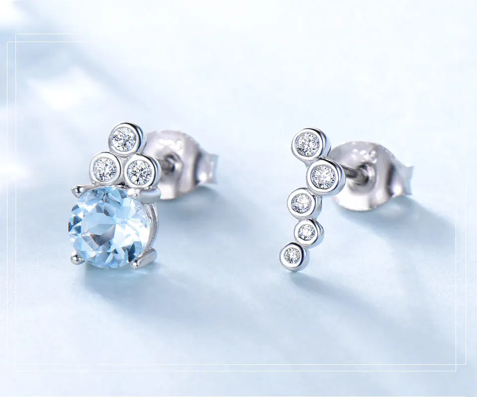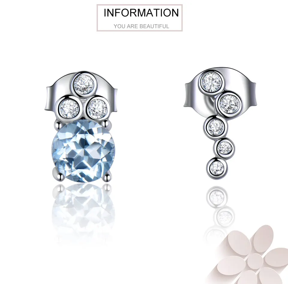 Brand : UMCHO Gemstone : Asymmetrical Earrings) Main Stone Weight Size : Approx.5.0 mm(0.5ct) Stone Clarity: VVS Stone Color: Blue Stone Cutting : Very Good Metal Type : 925 Sterling Silver Item Weight: Approx.1.02 g Stone Created Method : Natural Stone Origin: Brazil