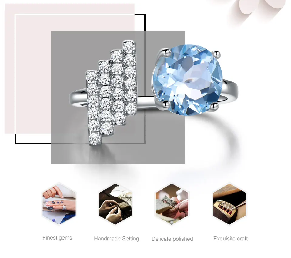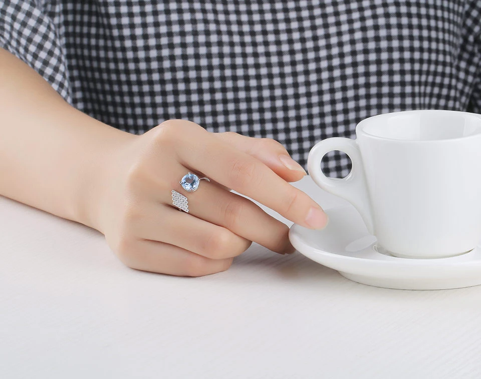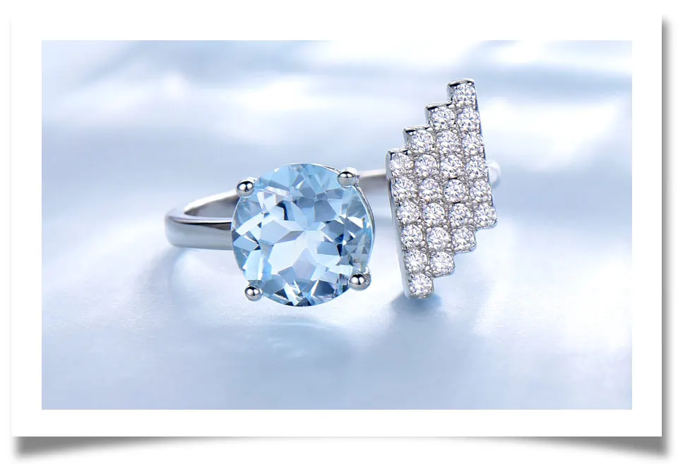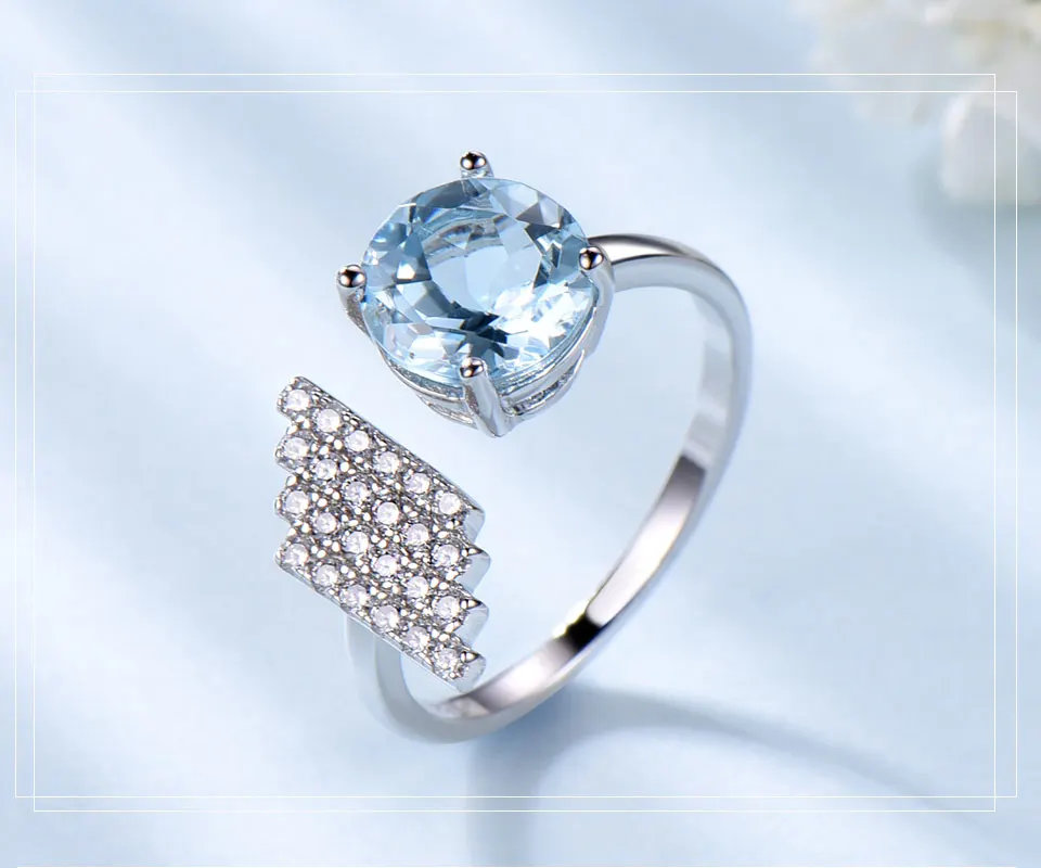 Brand : UMCHO Gemstone : Natural Sky Blue Topaz Main Stone Weight Size : Approx.8.0mm(2.12ct) Stone Clarity: VVS Stone Color: Blue Stone Cutting : Very Good Metal Type : 925 Sterling Silver Item Weight: Approx.2.53g Stone Created Method : Natural Stone Origin: Brazil