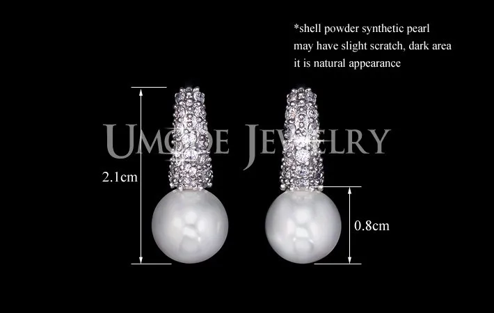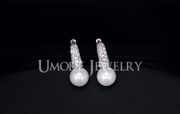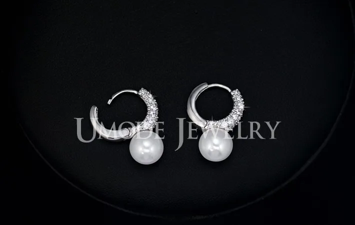 UMODE Fashion Woman Jewelry Newly Issued Tiny CZ Pave Simulated Pearl Small Rhodium Color Cute Girls' Hoop Earrings UE0123