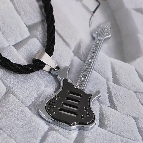 Unisex Stainless Steel Rock Guitar Necklace Pendants For Women Men Jewelry Accessories Pop Music Festival Concert