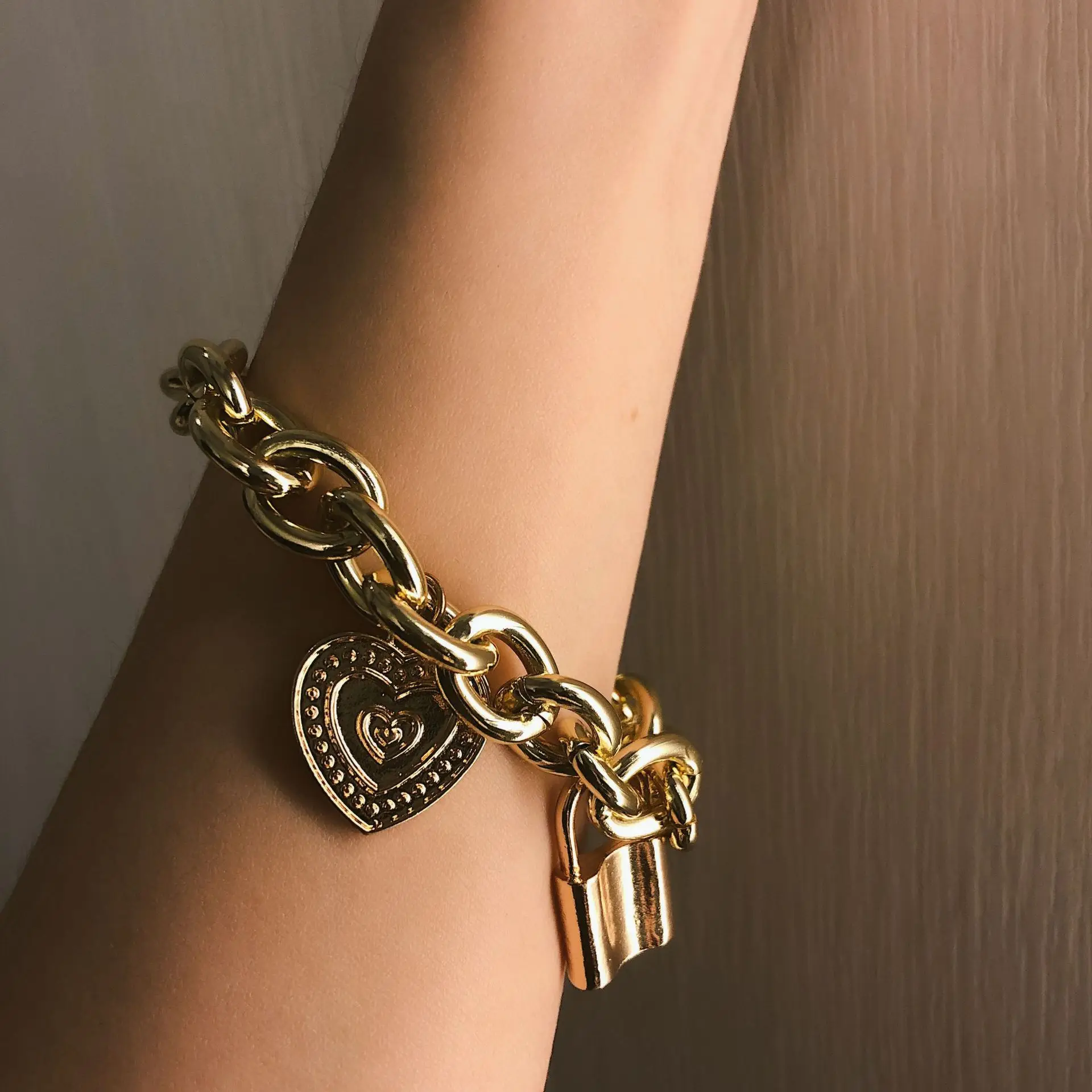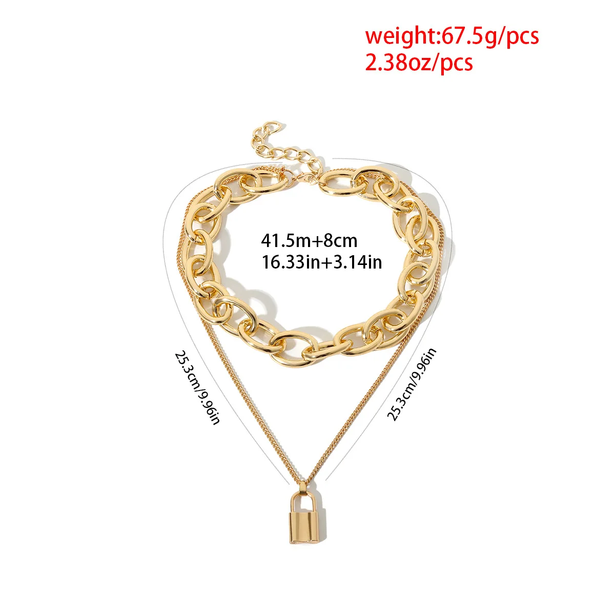 Vanmos Large Chain Lover's Lock Pendant Choker Necklace Vintage Punk Neck Collar Fashion Charm Women Statement Jewelry Gift