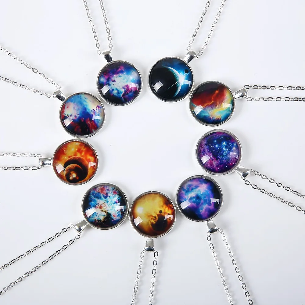 Vienkim 2019 New Fashion Galaxy Necklaces Nebula Space Glass Cabochon Pendants Brand Jewelry for Women Men Best Friend Ship Gift