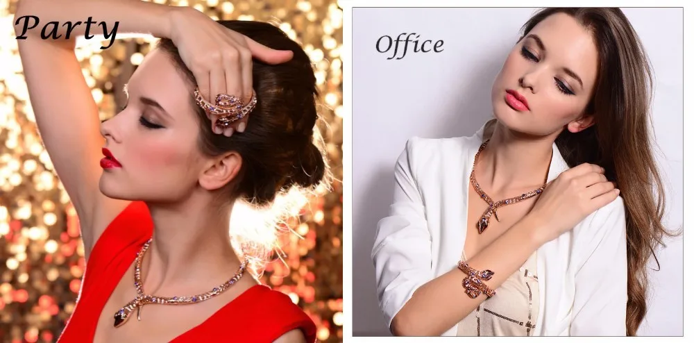 Viennois Rose Gold Color Snake Necklace For women Chokers Necklaces Rhinestone/Crystal Chain Necklaces Wedding Party Jewelry