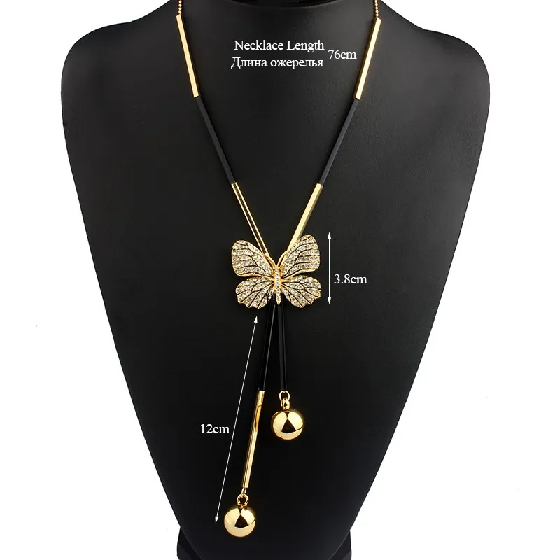 VIVILADY Elegant Butterfly Long Beaded Chain Tassel Necklace Women Rhinestone Office Accessory Bohemia Costumes Jewelry Bijoux