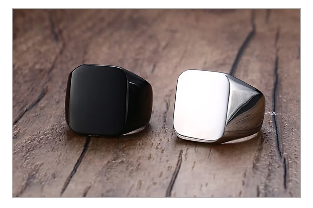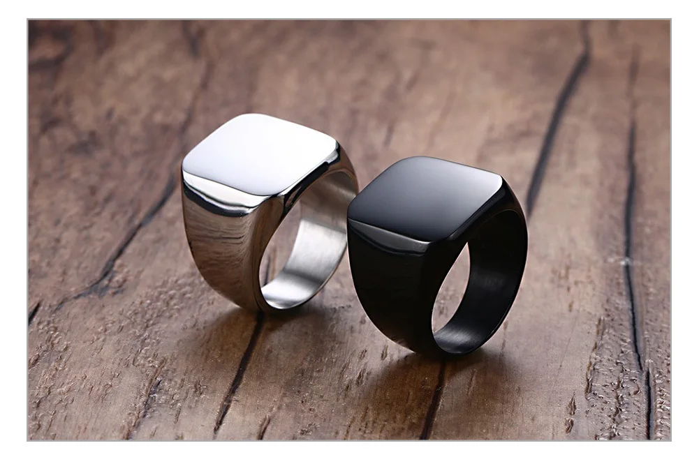 Vnox Personalized Mens Signet Rings Chunky Stainless Steel Boy Stamp Band Customize Engrave Male Jewelry Fraternal Rings BF Gift