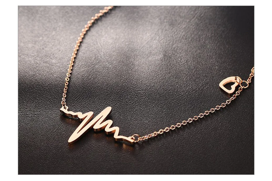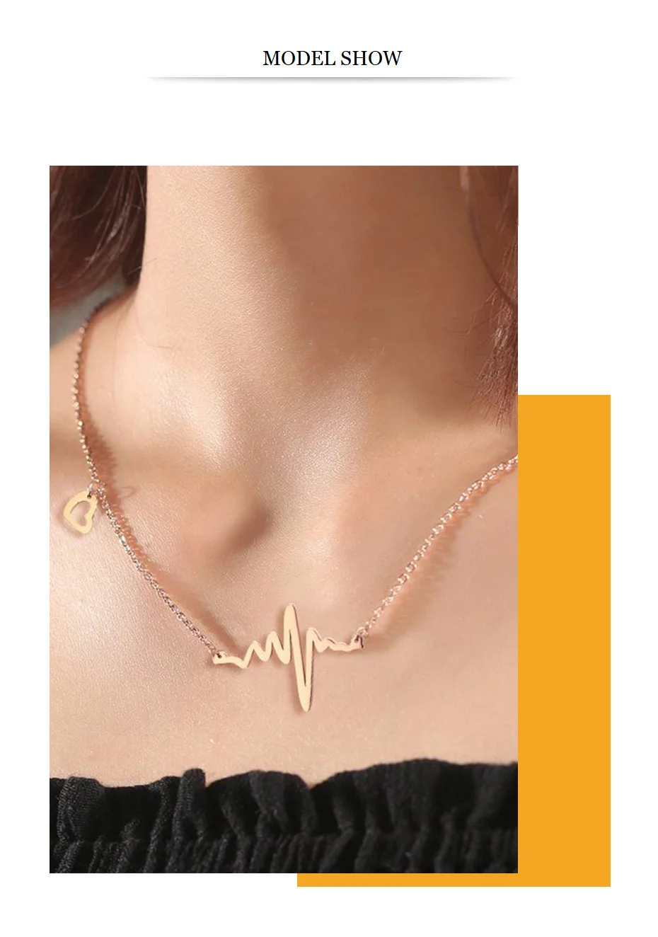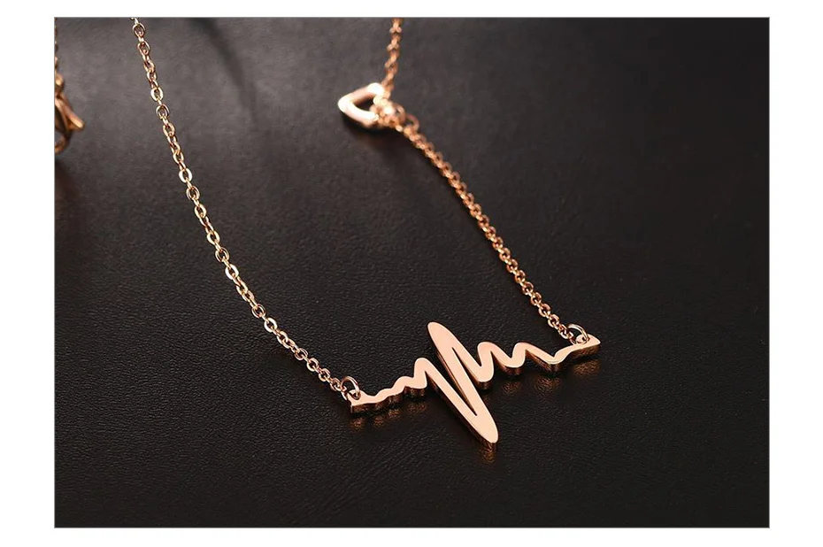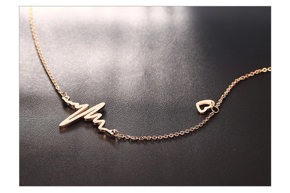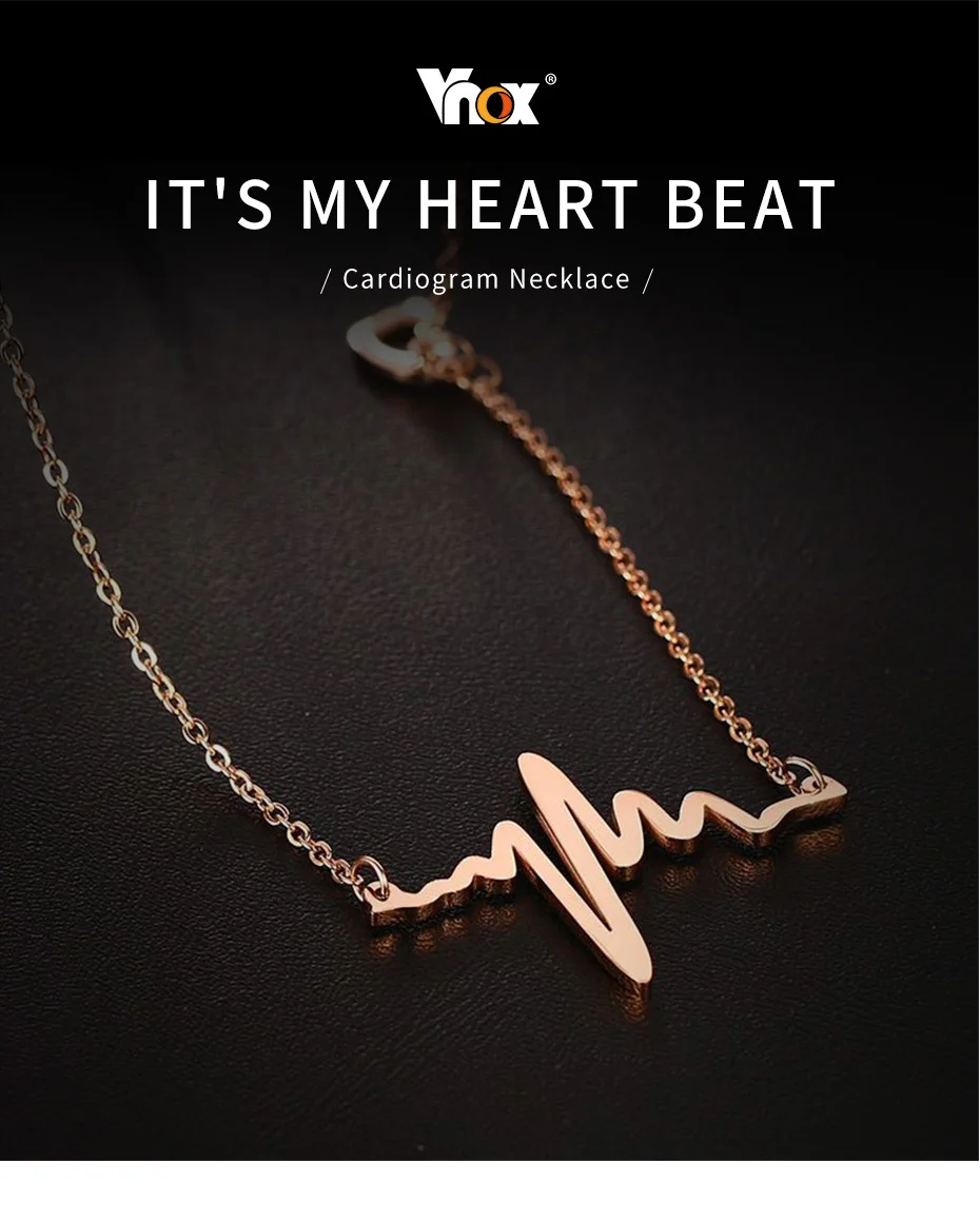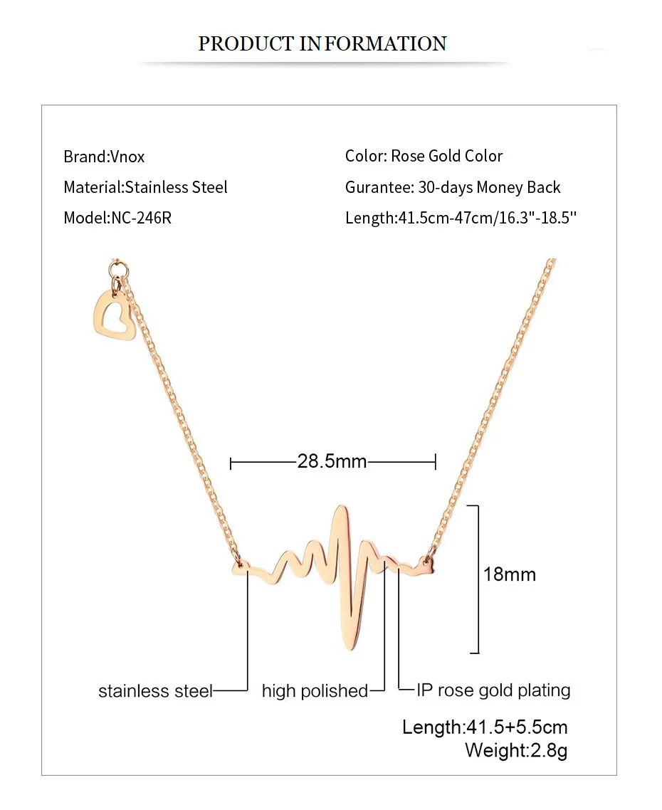 Vnox Temperament Heart Beat Trace Choker Necklace for Women Stainless Steel Cardiogram Pendant Elegant Lady Party Jewel