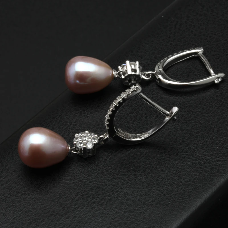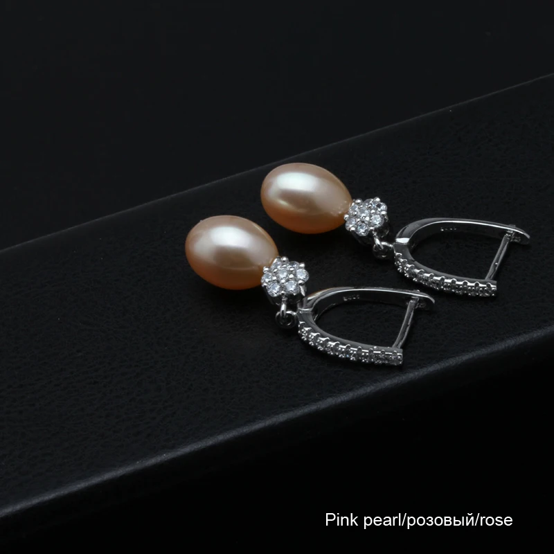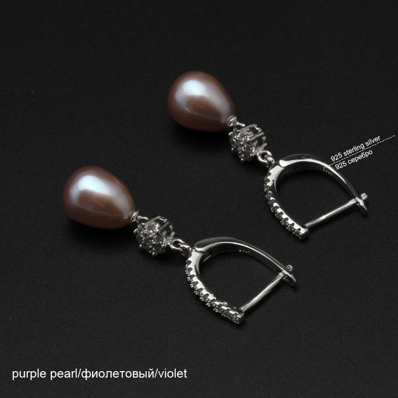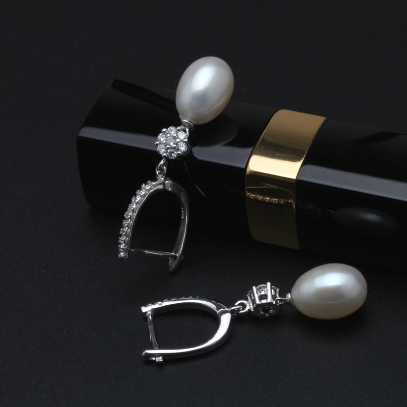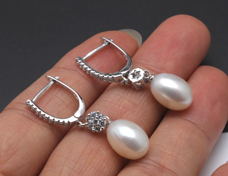 Wedding hanging christmas earrings women,freshwater natural pearl earrings silver 925 jewelry real 8-9mm pearls white box