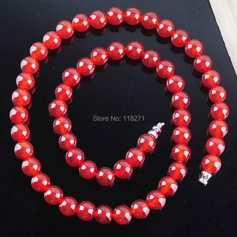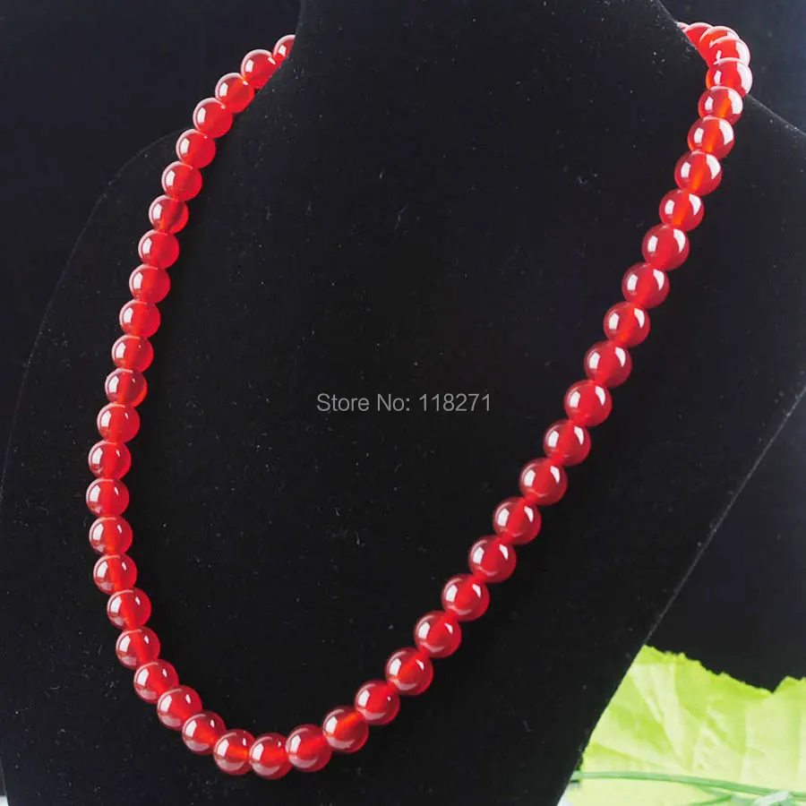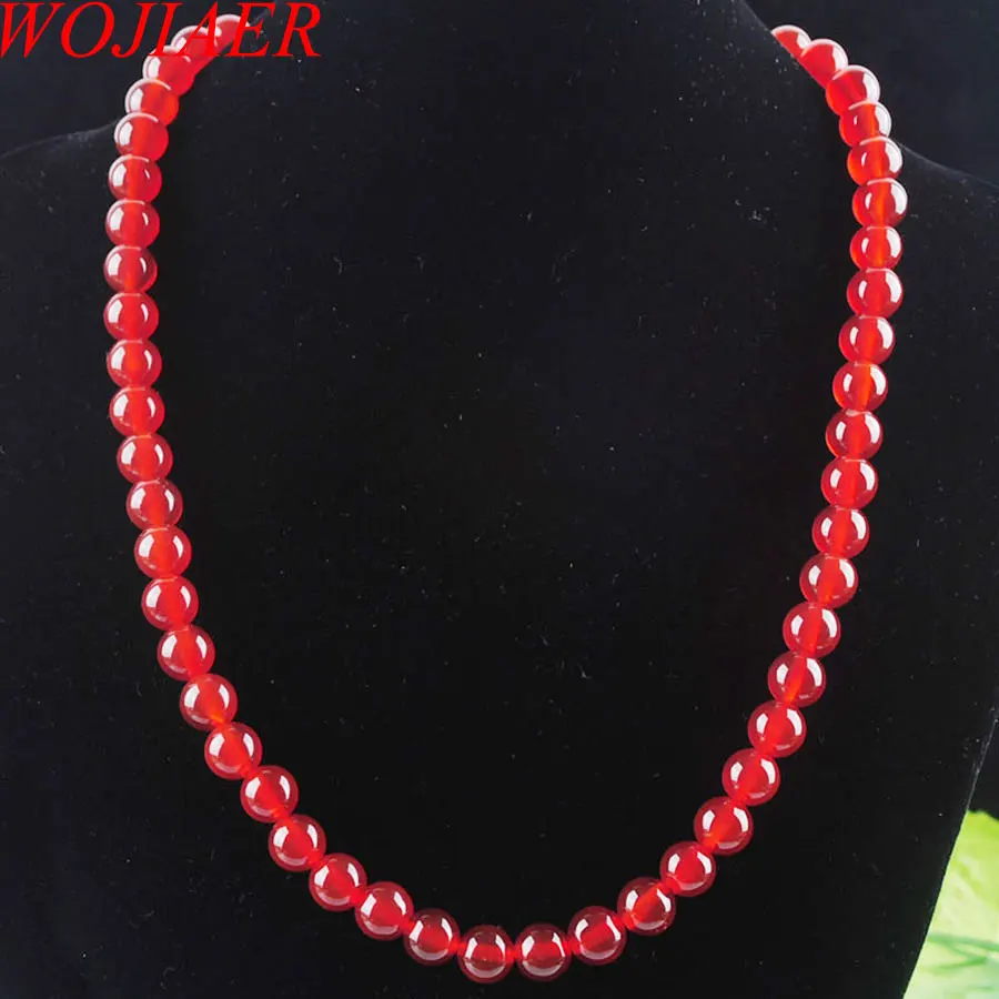 WOJIAER Free Shipping Red Agates Gem Stones Round Beads 8mm Necklace Strand 18 inches Fashion Jewelry PF3027