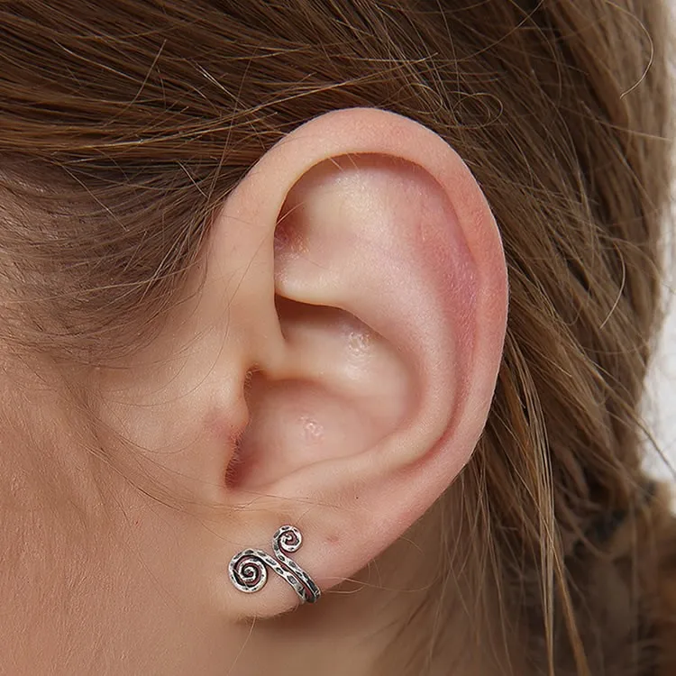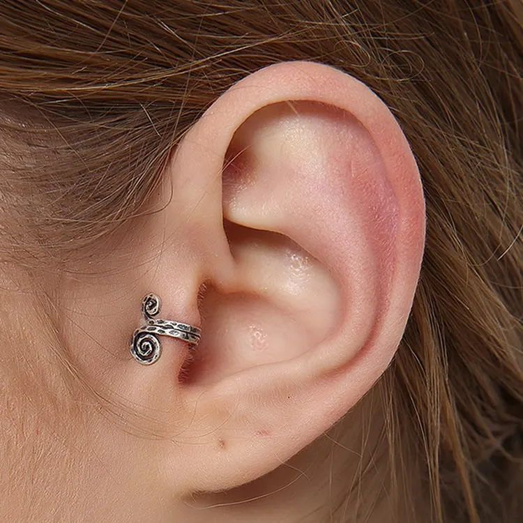 Women Vintage Snail Oxidation Black Ear Clip 925 Sterling Silver Earrings Adjustable Ear Cuff Fashion Lovely Jewelry