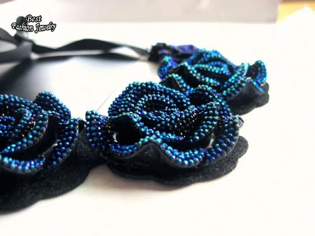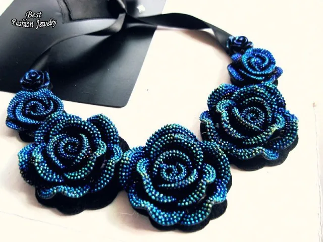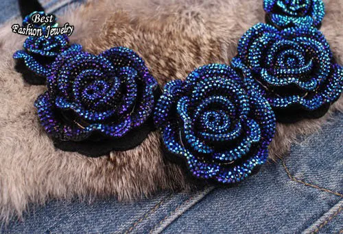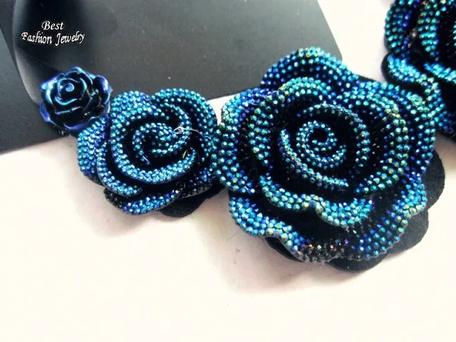 Women's Pretty Consume Short Necklace Big Blue Rose Pendant False Collar Exquisite Female Banquet Accessory