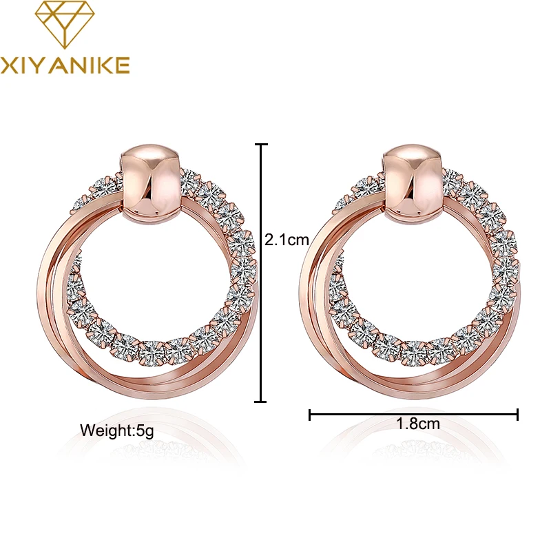 XIYANIKE New Fashion Exquisite Double Round Rhinestone Stud Earrings Rose Gold Color Earrings For Women/Girls Jewelry E395