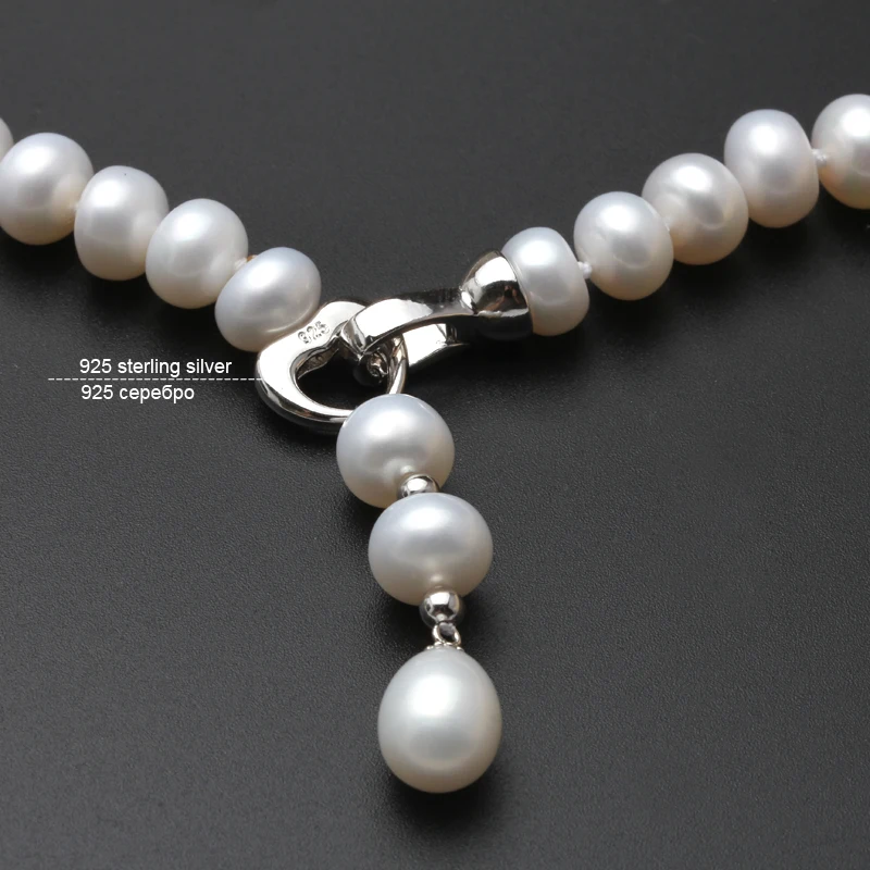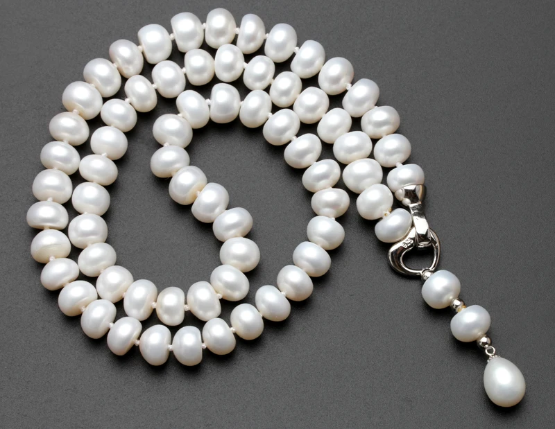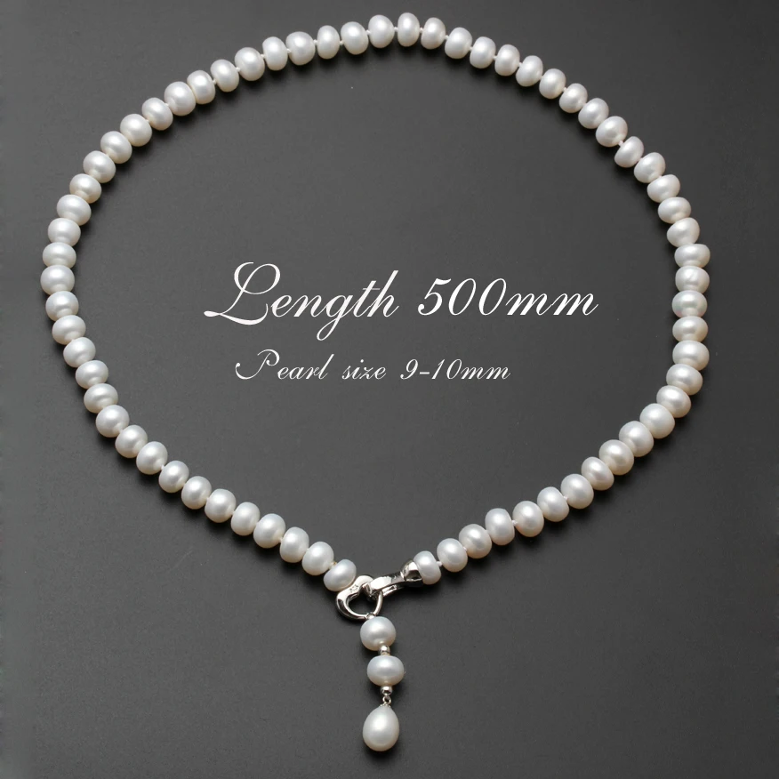 YouNoble 500mm Mother Long Pearl Necklace,Natural Freshwater Pearl Pendant Necklace 925 Sterling Silver Jewelry For Women White