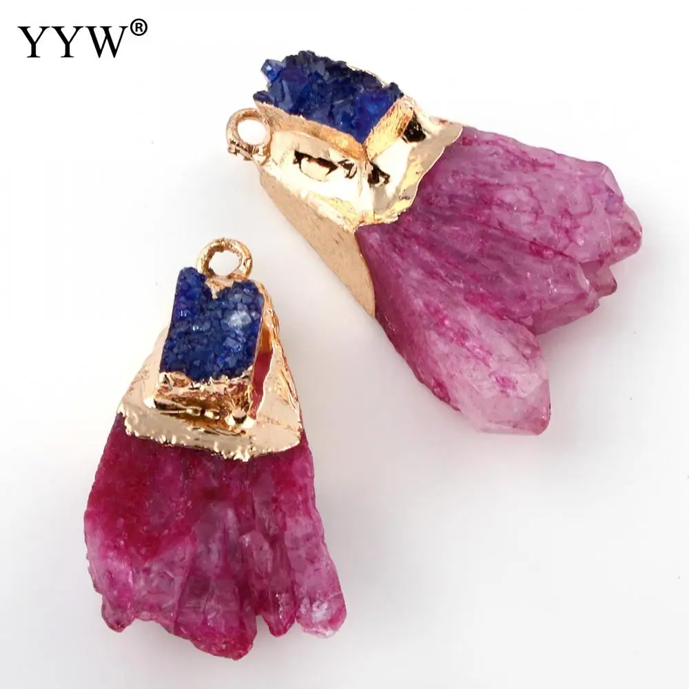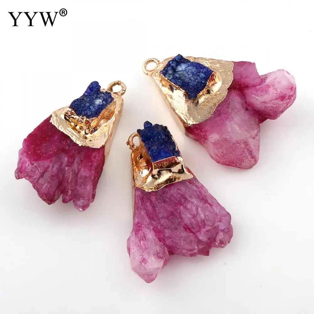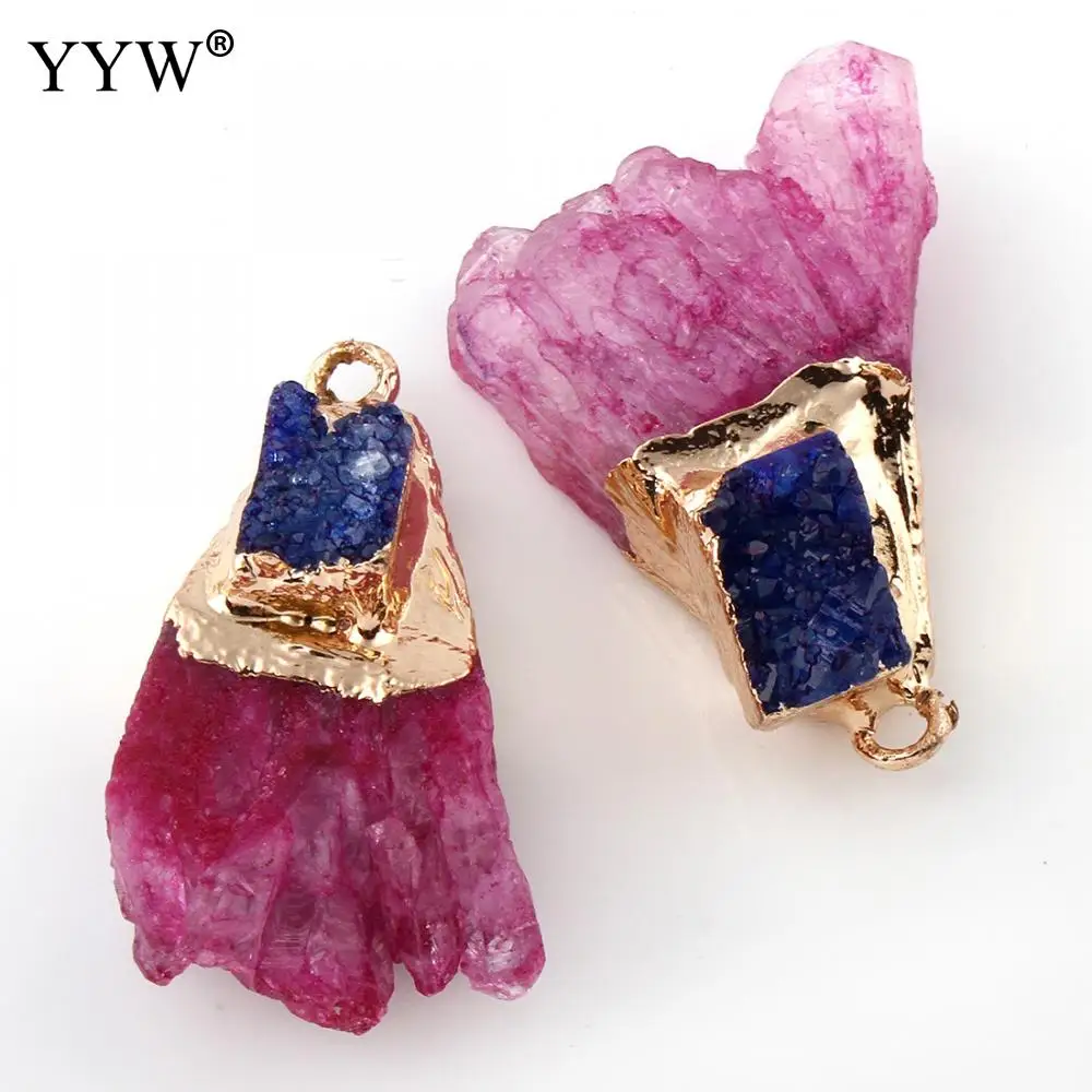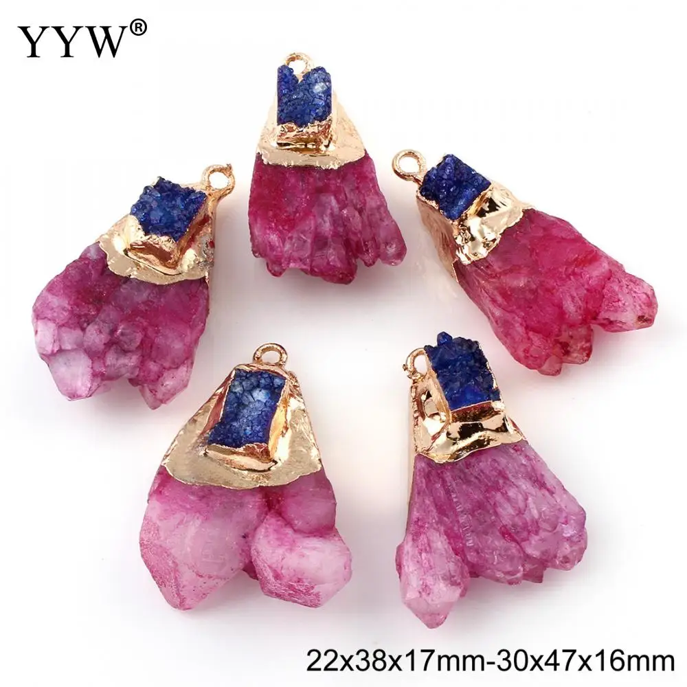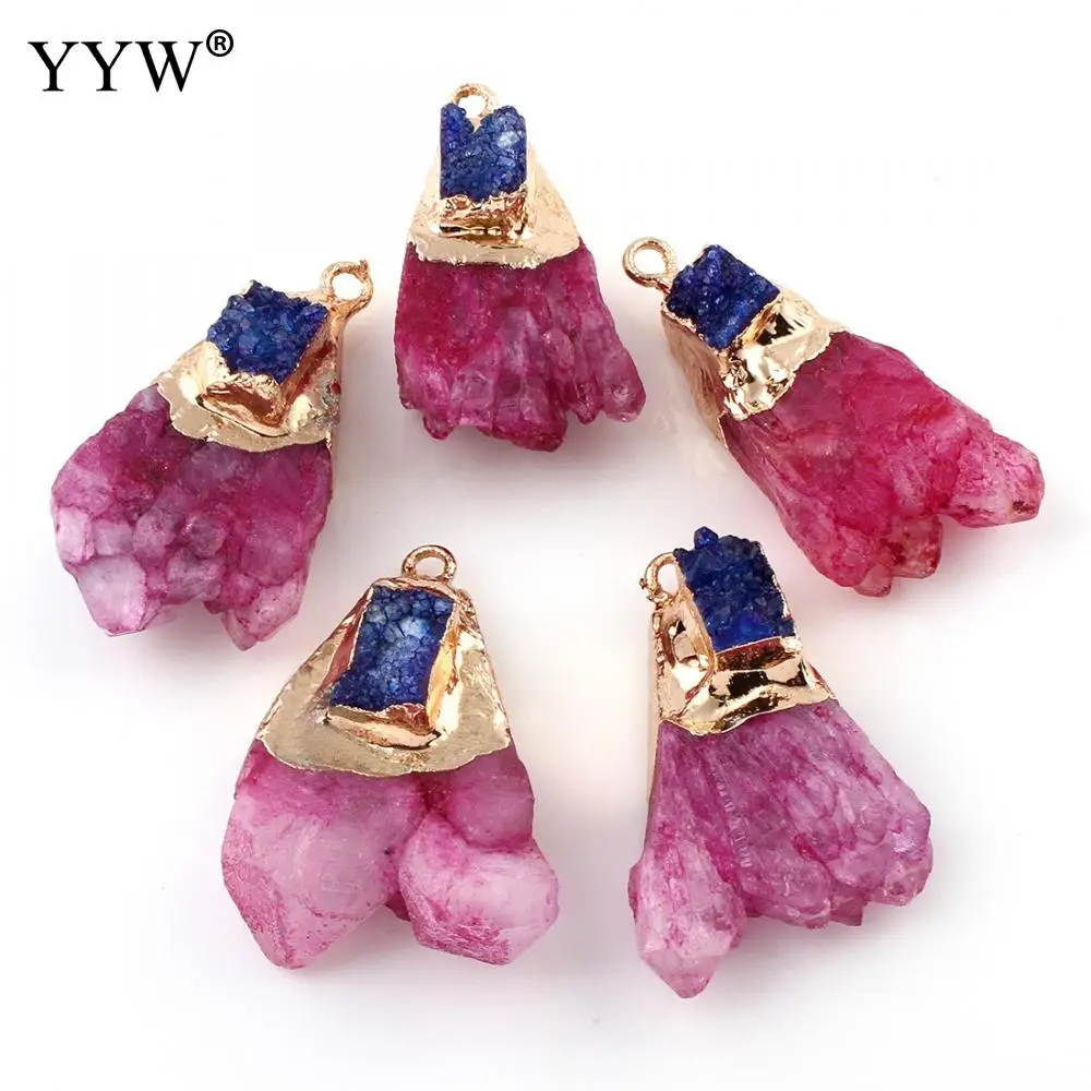 Ice Quartz Agate Pendant,Wholesale Jewelry, with Brass, gold color plated, druzy style, more colors for choice, 22x38x17mm, 30x47x16mm, Hole:Approx 2mm, 5PCs/Bag, Sold By Bag