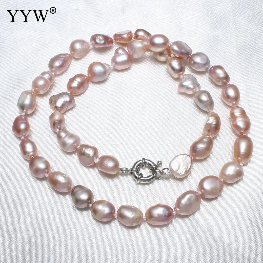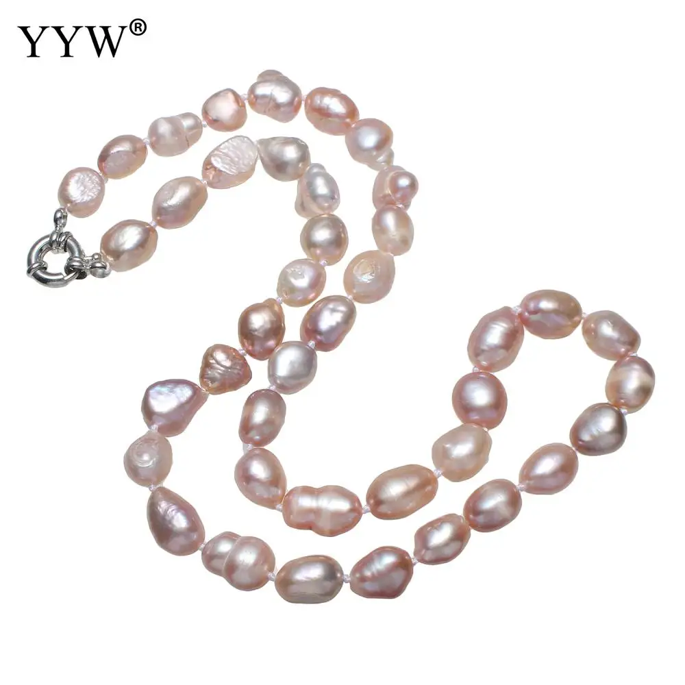 Freshwater Pearl Brass Necklace,fantasy women jewelry, with Brass, natural, for woman, pink, 9x12mm, Sold Per Approx 19.5 Inch Strand