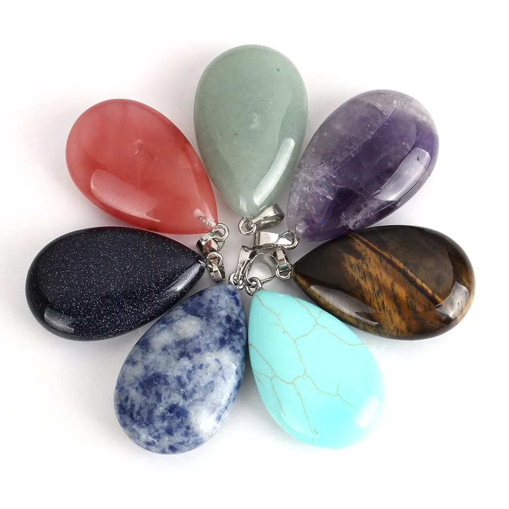 Pendants Jewelry,Punk Style, with brass bail, Teardrop, platinum color plated, natural & different materials for choice, nickel, lead & cadmium free, 25x42x12mm, Hole:Approx 5x8mm