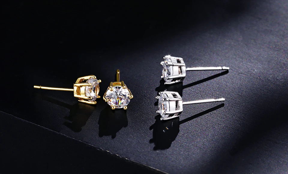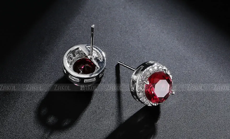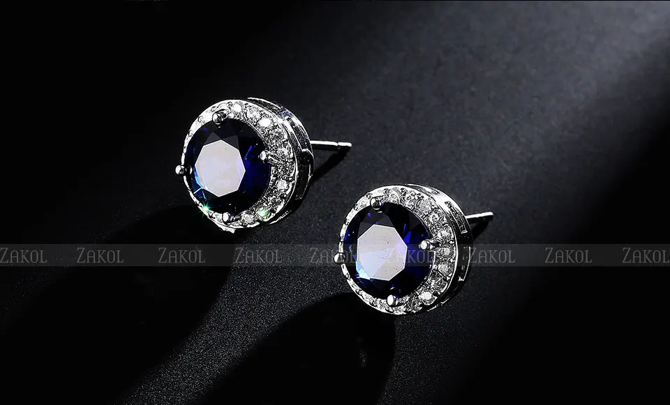 ZAKOL Hot White Clear Round Cut 8mm Round Cubic Zircon Stud Earrings For Women Wedding Jewelry Trendy Crystal Earrings FSEP003