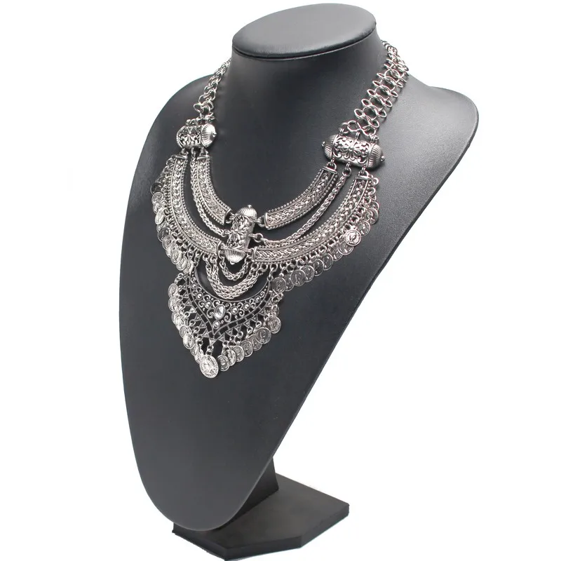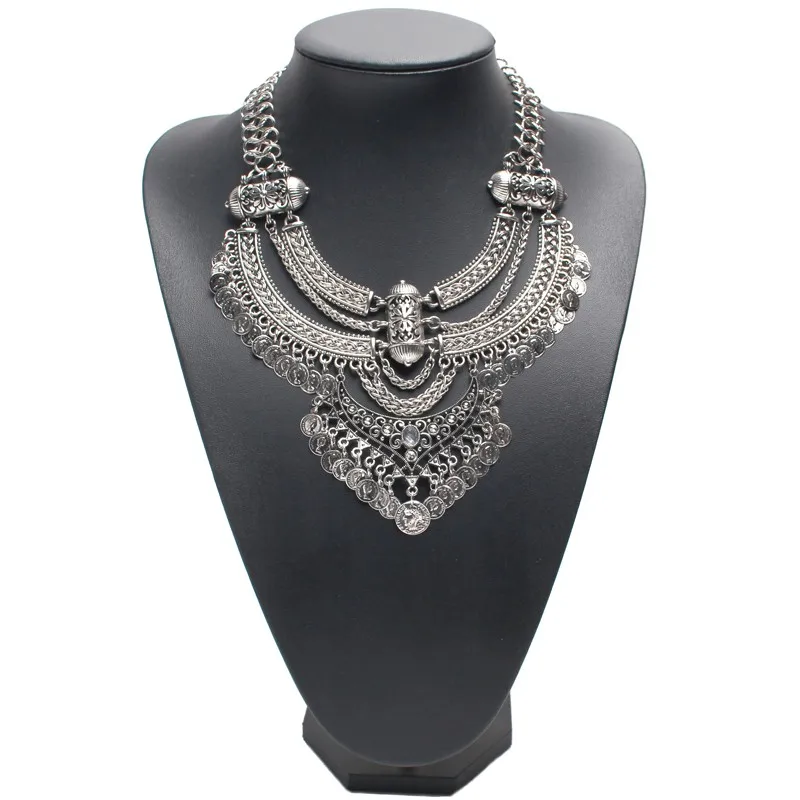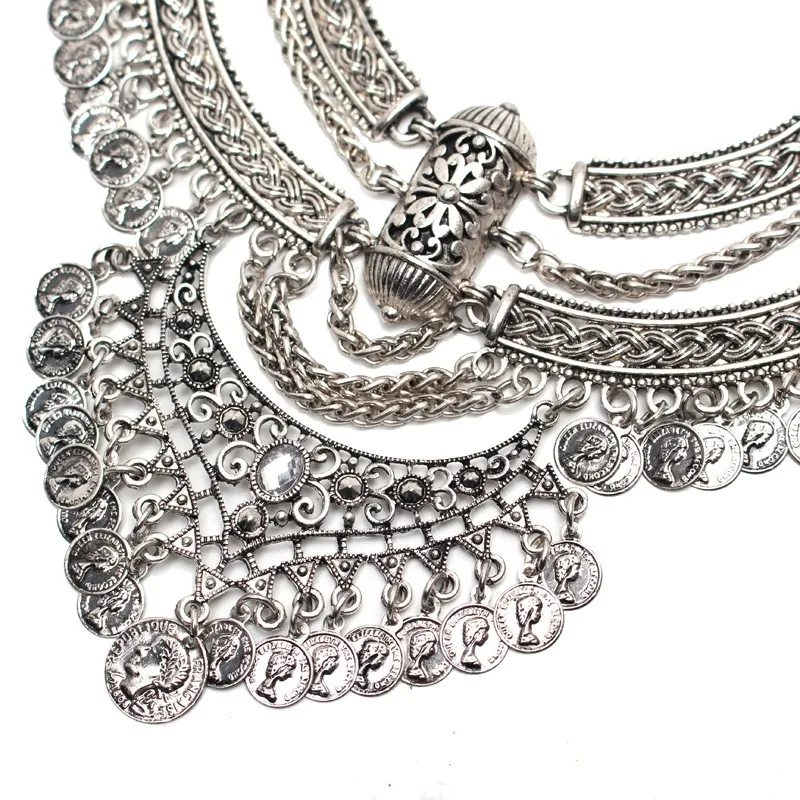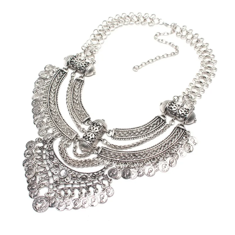 Ztech fashion Boho necklace Crystal Inlaid Carving Jewelry Vintage Necklaces metal chain choker coin pendant statement Necklaces